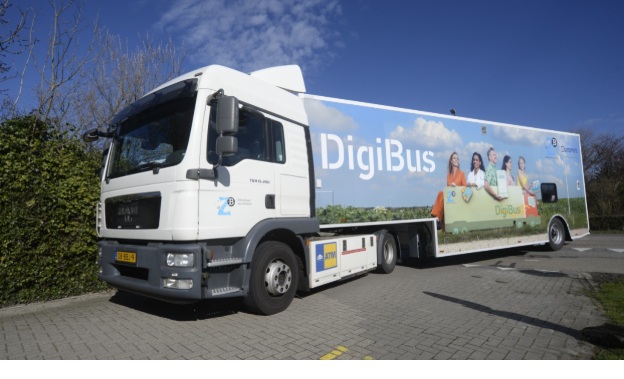 De gloednieuw Digibus is een Bibliobus vol boeken, producten, (digi)tale hulp en maatschappelijke informatie. Naast de boekencollectie, een geldautomaat en een postkantoor biedt de bus ook diensten aan zoals het Informatiepunt Digitale Overheid en taalhulp. Je kunt er ook informatie vinden over wonen, zorg en welzijn.